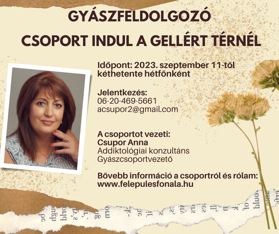 Csoportvezető: Csupor Anna gyászcsoport-vezető, addiktológiai konzultáns.
