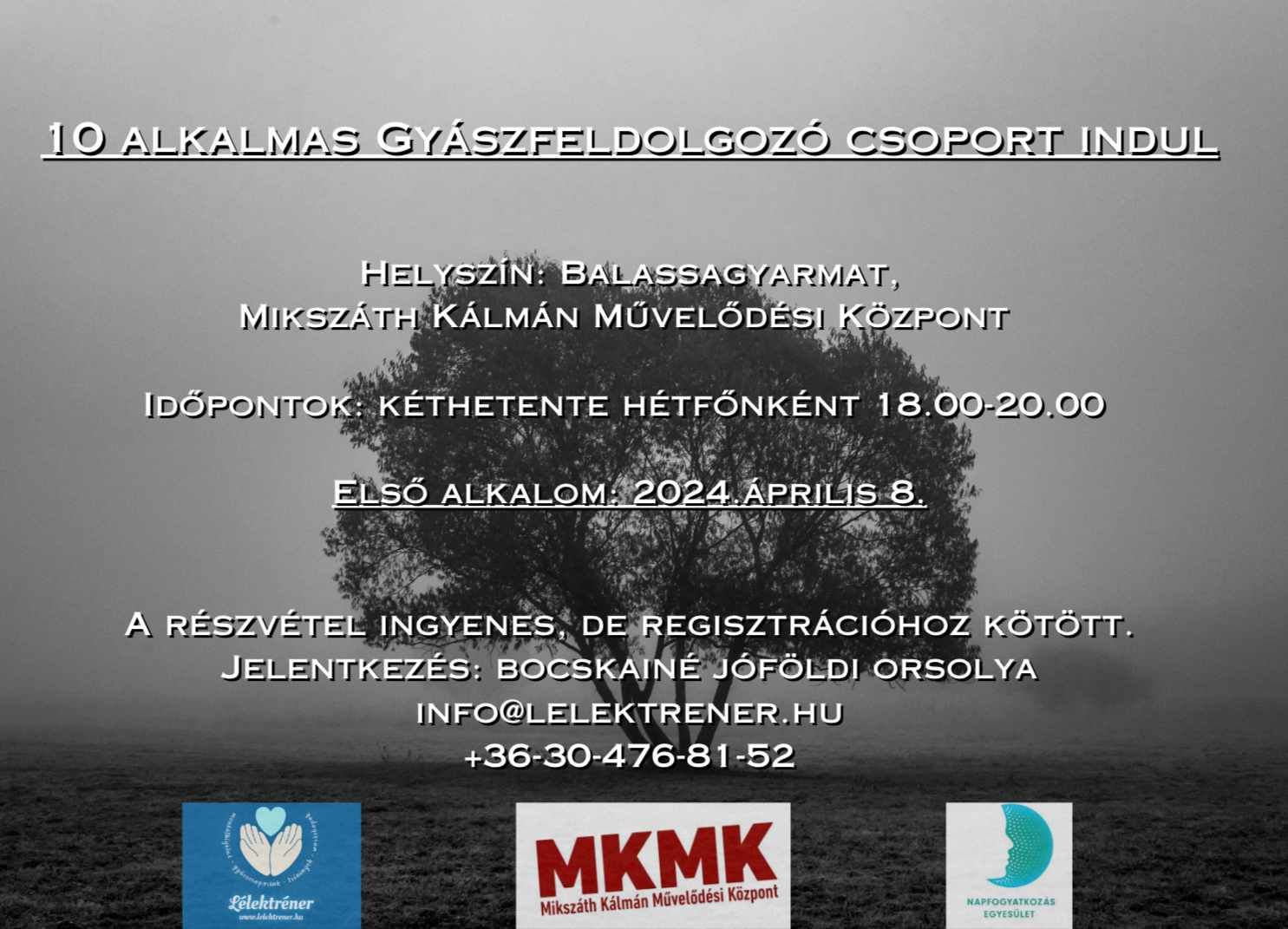 Balassagyarmaton, a Mikszáth Kálmán Művelődési Központban 10 alkalmas ingyenes gyászfeldolgozó csoport indul.