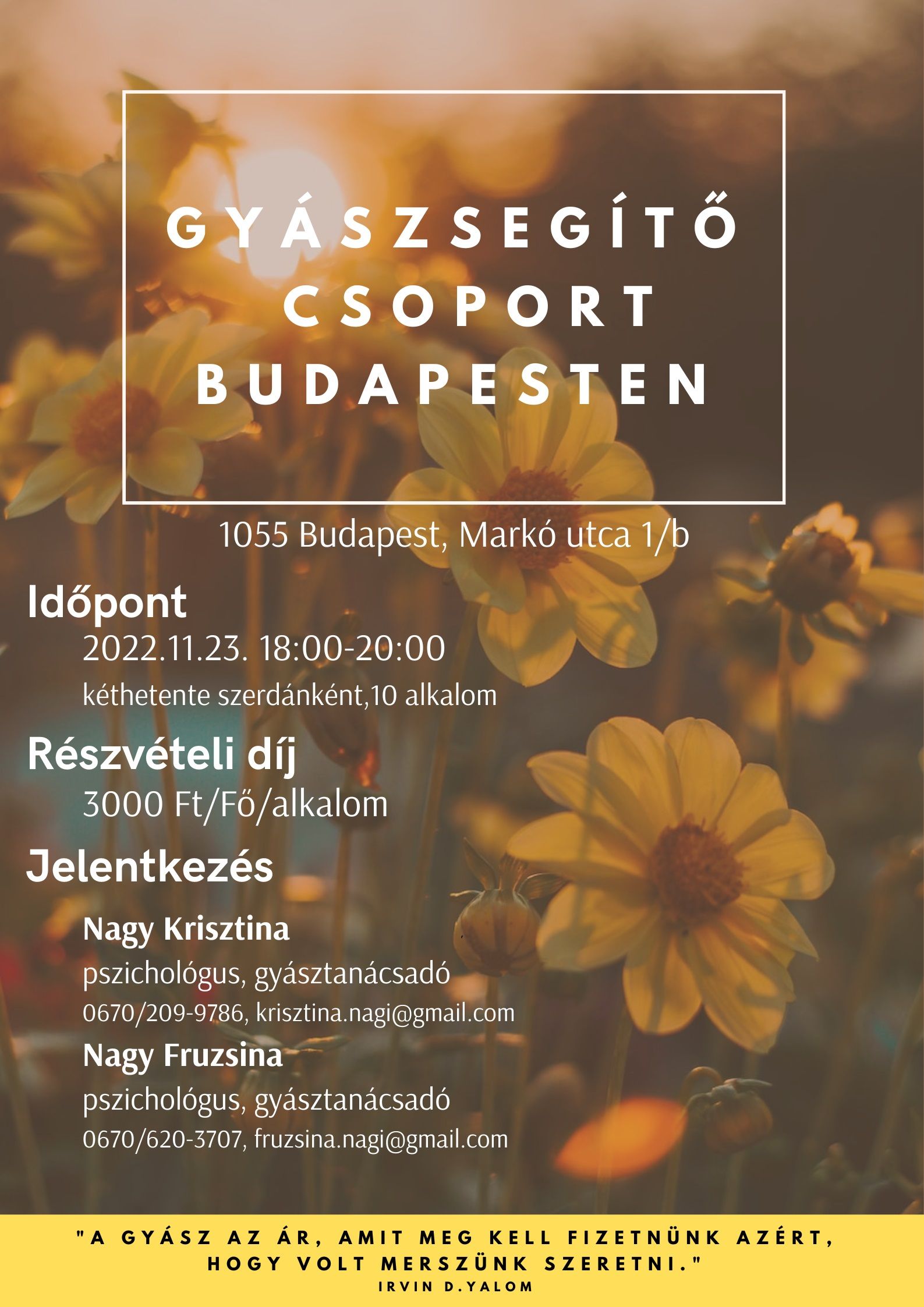 Szeretettel várjuk azok jelentkezését, akik veszteséget éltek át és a gyászban egy biztonságos, megtartó, sorstársias közösséghez csatlakoznának.