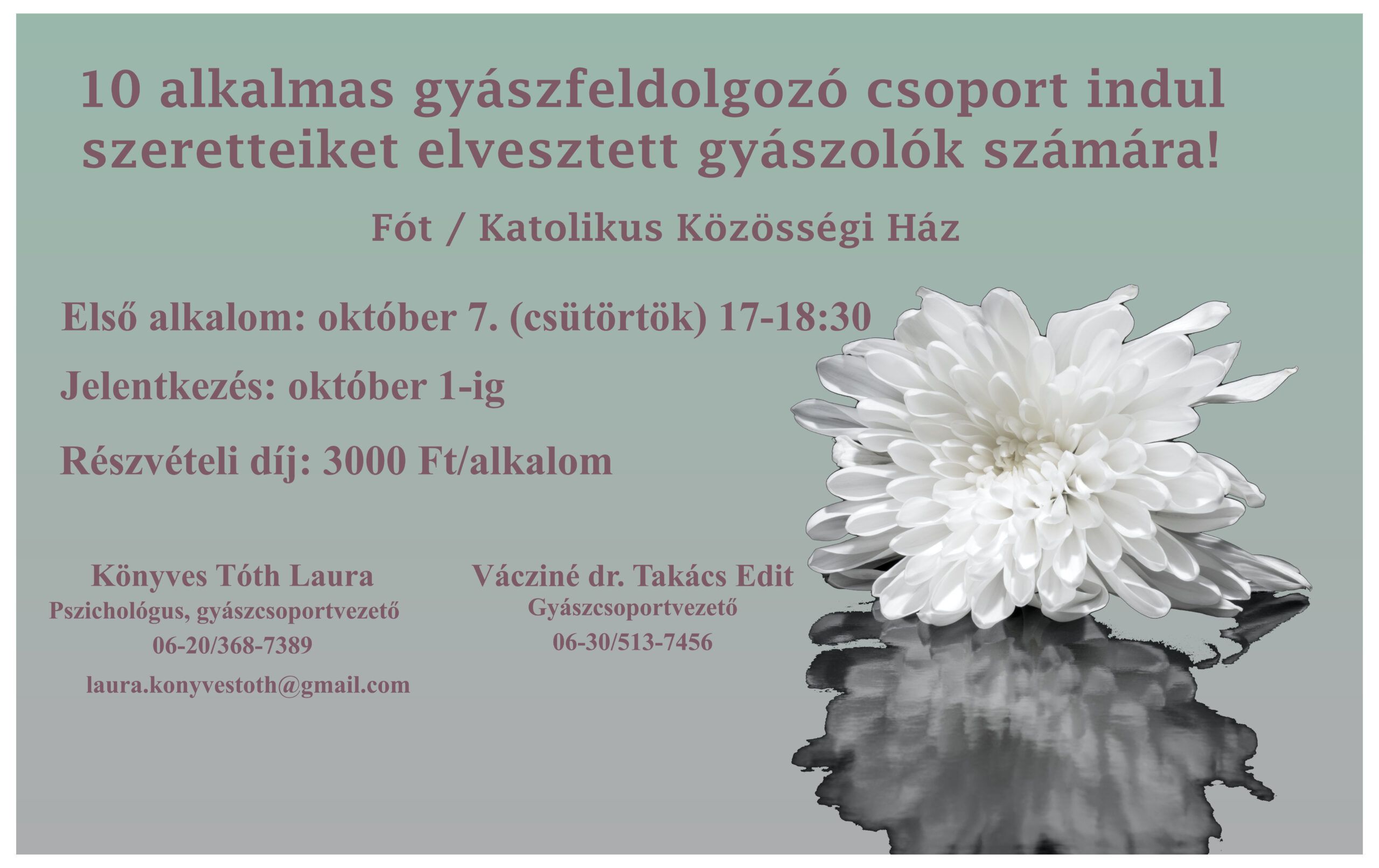 Vácziné dr. Takács Edit gyászcsoportvezető 06-30/5137456