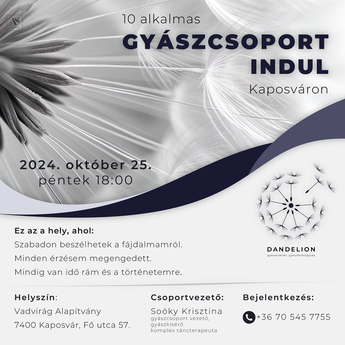 10 alkalmas gyászcsoport indul Kaposváron 2024. október 25. pénteken 18:00-20.00 között.