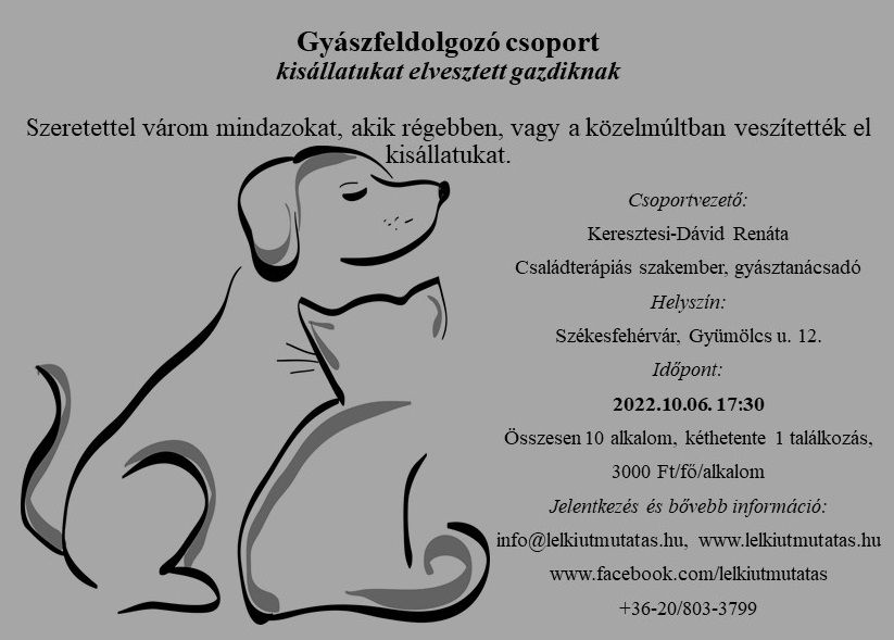 Szeretettel várom mindazokat, akik régebben, vagy a közelmúltban veszítették el kisállatukat.
