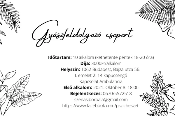![]() | ONLINE GYÁSZFELDOLGOZÓ CSOPORT INDUL OKTÓBERBEN | Részletek | |