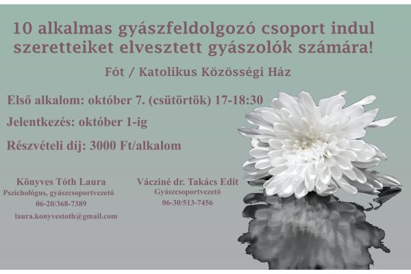![]() | Gyászfeldolgozó csoport indul Fóton | Részletek | |