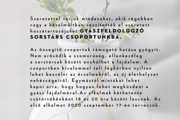![]() | ONLINE GYÁSZFELDOLGOZÓ CSOPORT INDUL | Részletek | |