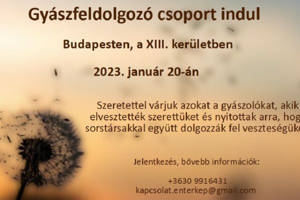 ![]() | Gyászfeldolgozó csoport indul 2023. január 20-án a Budapesten, a XIII. kerületben. | Részletek | |