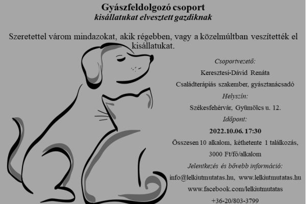 ![]() | Kisállatát elvesztett gazdik részére gyászfeldolgozó csoport | Részletek |