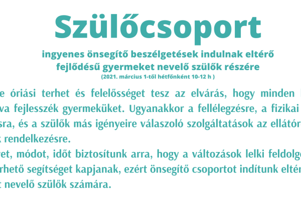 ![]() | Csoport indul eltérő fejlődésű gyerekek szüleinek | Részletek | |