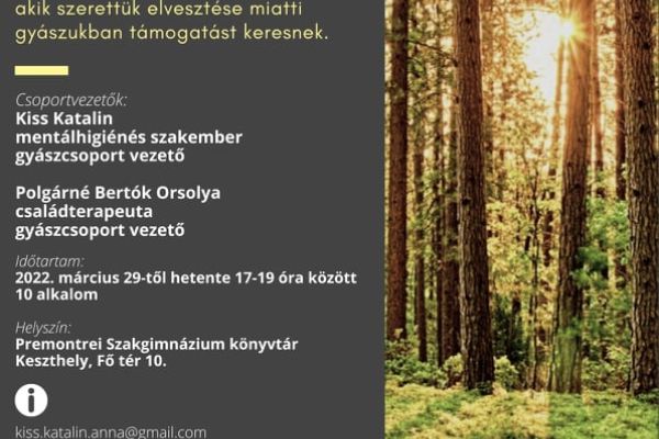 ![]() | Gyászfeldolgozó csoport indul márciusban, Keszthelyen | Részletek | |