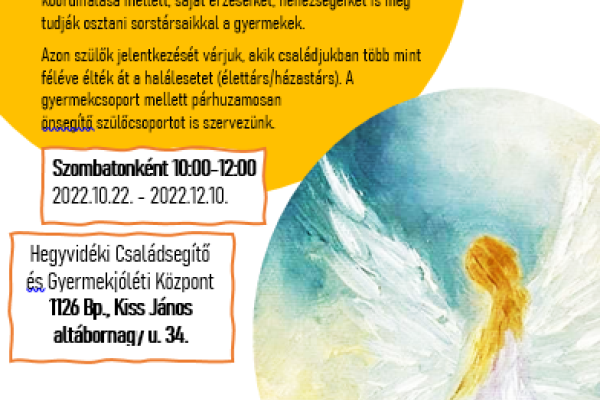 ![]() | Gyermekkorban átélt gyász feldolgozását segítő csoport felnőtteknek | Részletek | |