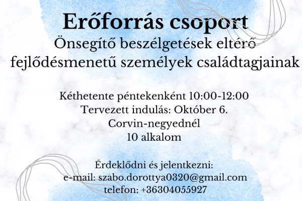 ![]() | Erőforrás csoport eltérő fejlődésmenetű családtagok rokonai számára | Részletek | |