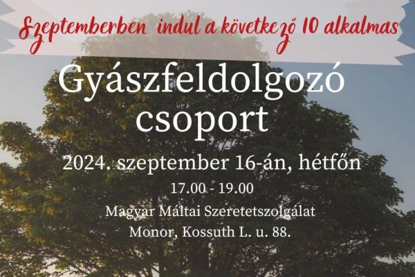 2024. szeptember 19 | ![]() | Online gyászfeldolgozó csoport szeptemberi kezdéssel | Részletek | |
